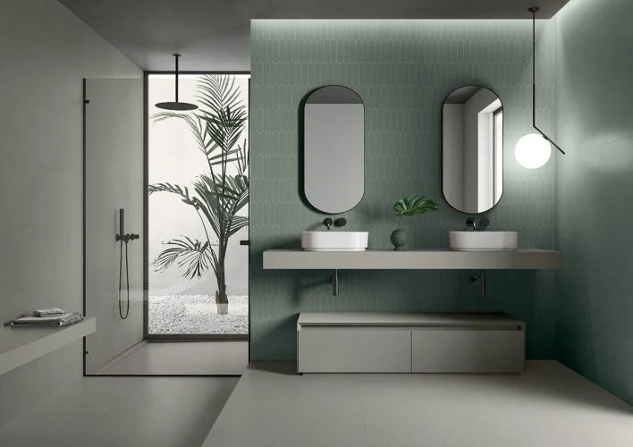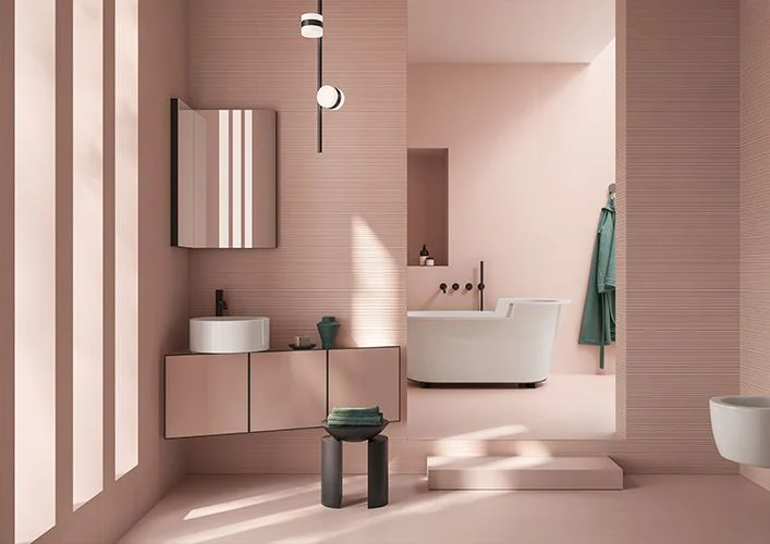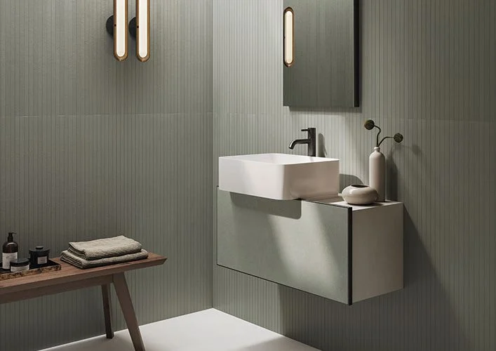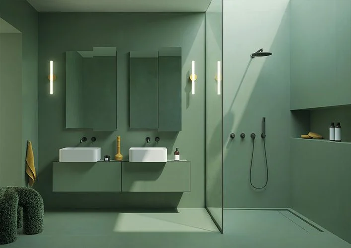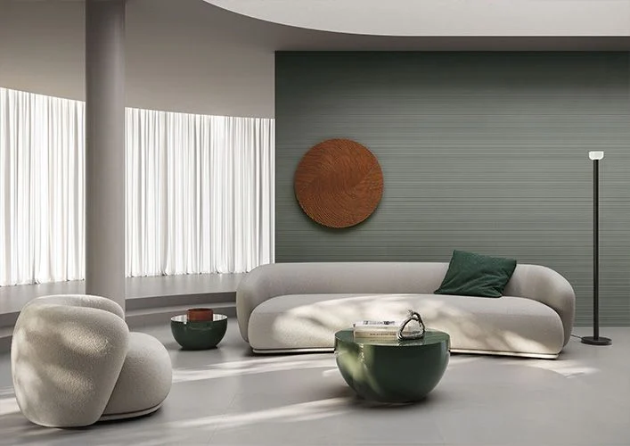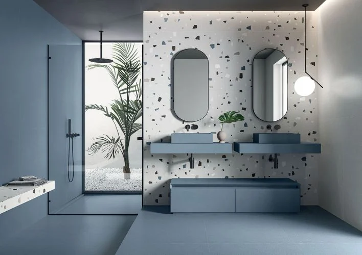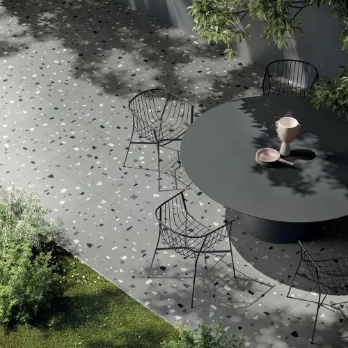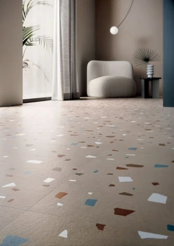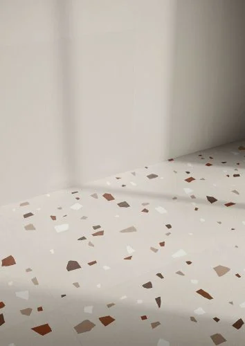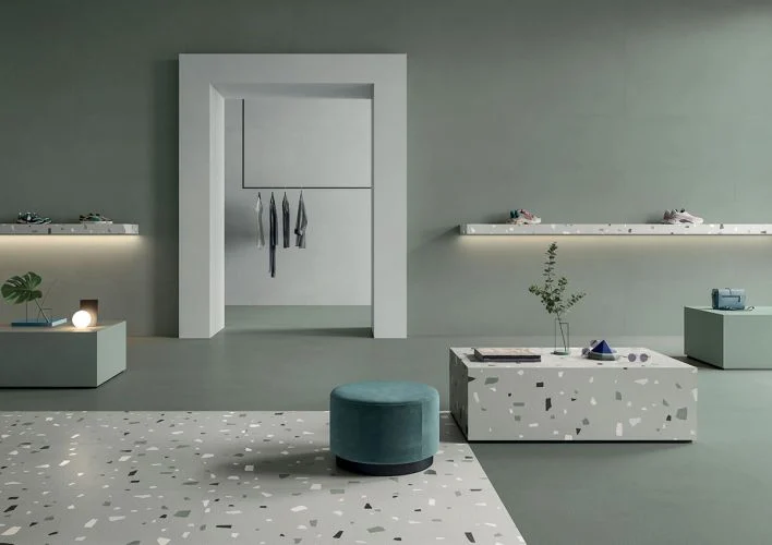 Μια διαδοχή φυσικών αποχρώσεων, εμπνευσμένη από τις πιο σύγχρονες αισθητικές τάσεις του μοντέρνου design, εμπλουτισμένη με πολύχρωμες, ιριδίζουσες νιφάδες που ενσωματώνονται φυσικά στη μάζα του σκυροδέματος.