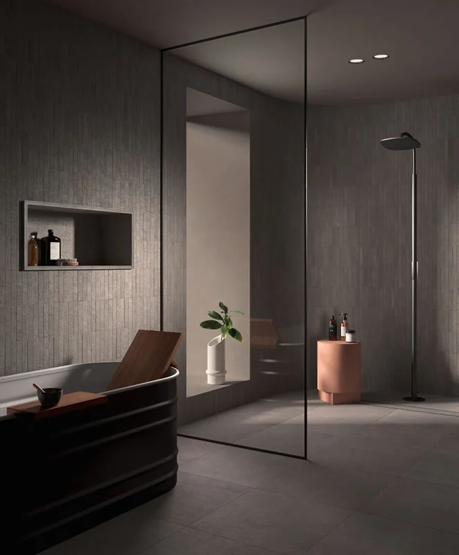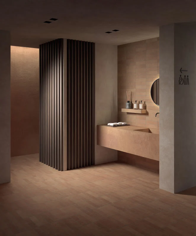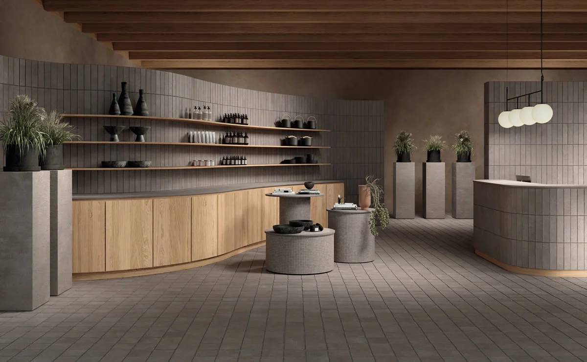 Η μεγάλη γκάμα δομών και επιφανειών μπορεί να χρησιμοποιηθεί για τη δημιουργία χώρων με τέλεια ταιριαστή αισθητική, από το συγκρατημένο φινίρισμα των μεγάλων μεγεθών και την ευχάριστη πινελιά των φυσικών επιφανειών, έως την ξεχωριστή υφή του πάχους 2 cm και το Spakko, για μια ολοκληρωμένη εμπειρία αφής.